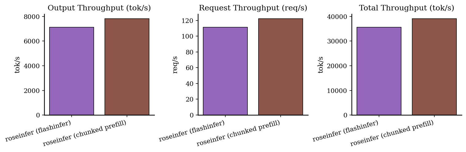 | 0.40 | roseinfer (chunked prefill) | 12.74/18.29/69.68 | 2.39/5.75/7.93 | 2.26/2.76/11.71 | 160.98/350.31/534.18 |