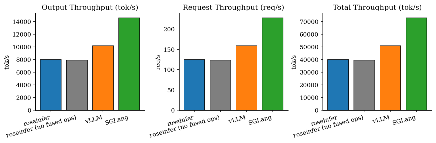 roseinfer:fused ops 开启(默认)roseinfer+nofuse:fused ops 关闭(A/B 对比组)