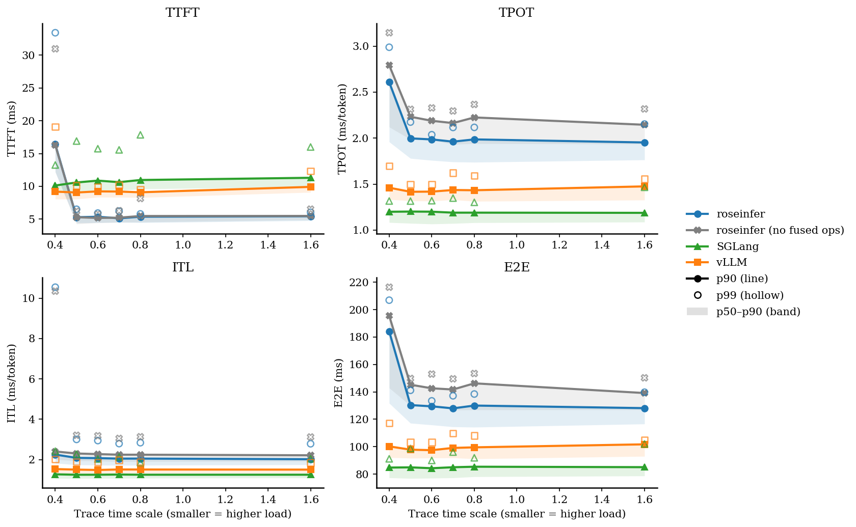 | 0.80 | roseinfer (no fused ops) | 4.56/5.47/8.15 | 1.94/2.23/2.37 | 1.91/2.24/3.13 | 126.84/146.23/153.41 |
