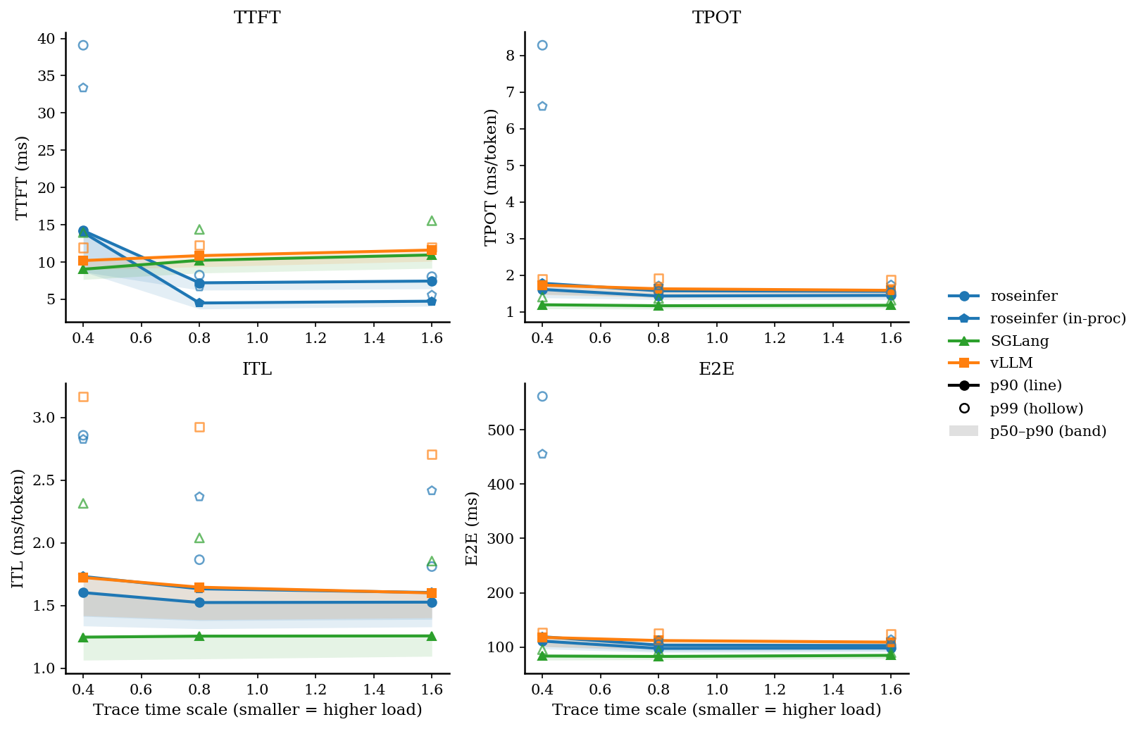 | scale | backend | TTFT p50/p90/p99 (ms) | TPOT p50/p90/p99 (ms) | ITL p50/p90/p99 (ms) | E2E p50/p90/p99 (ms) |