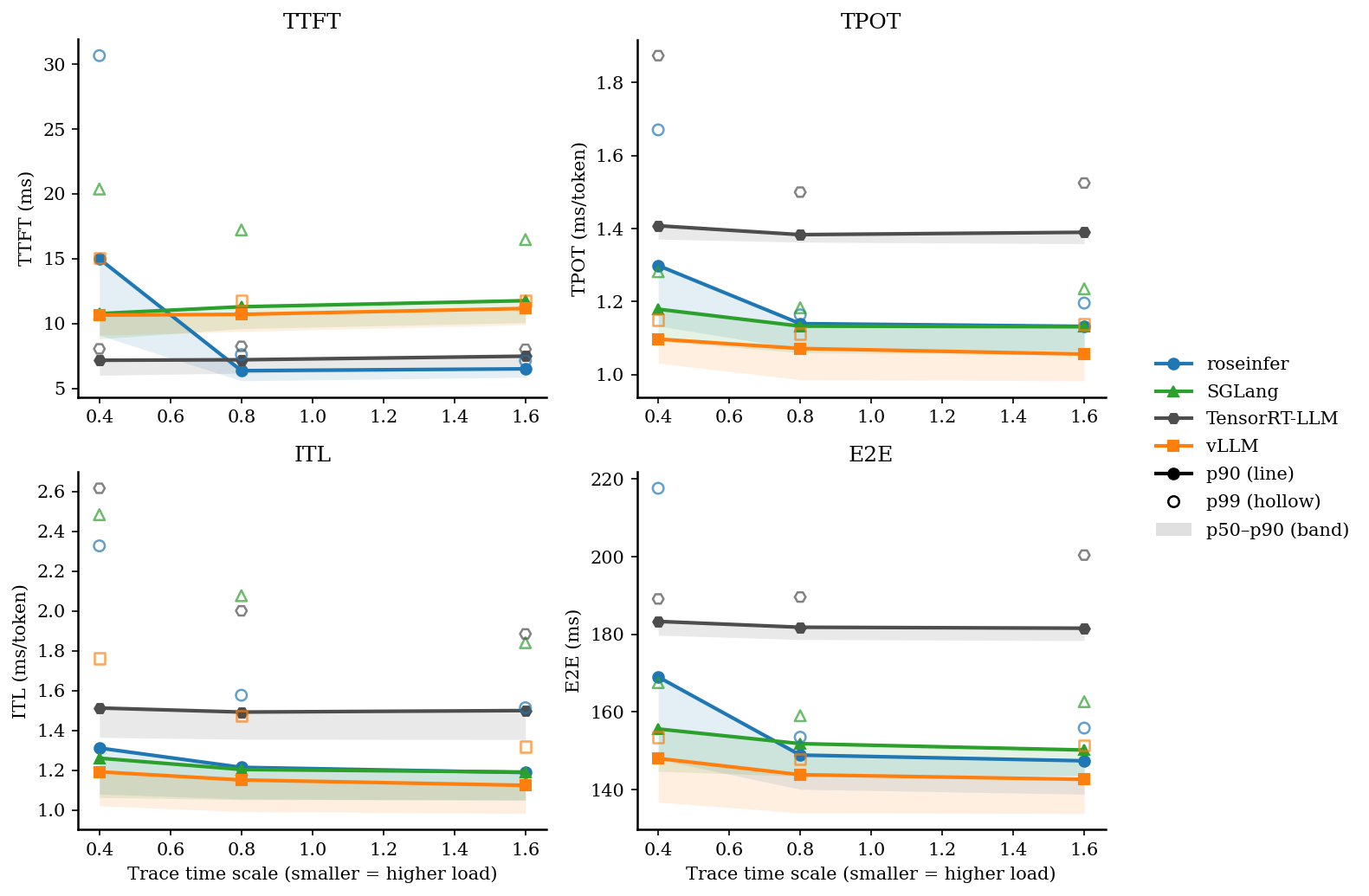 从零实现 LLM Inference:077. roseinfer vs vLLM vs SGLang vs TensorRT-LLM(baseline)